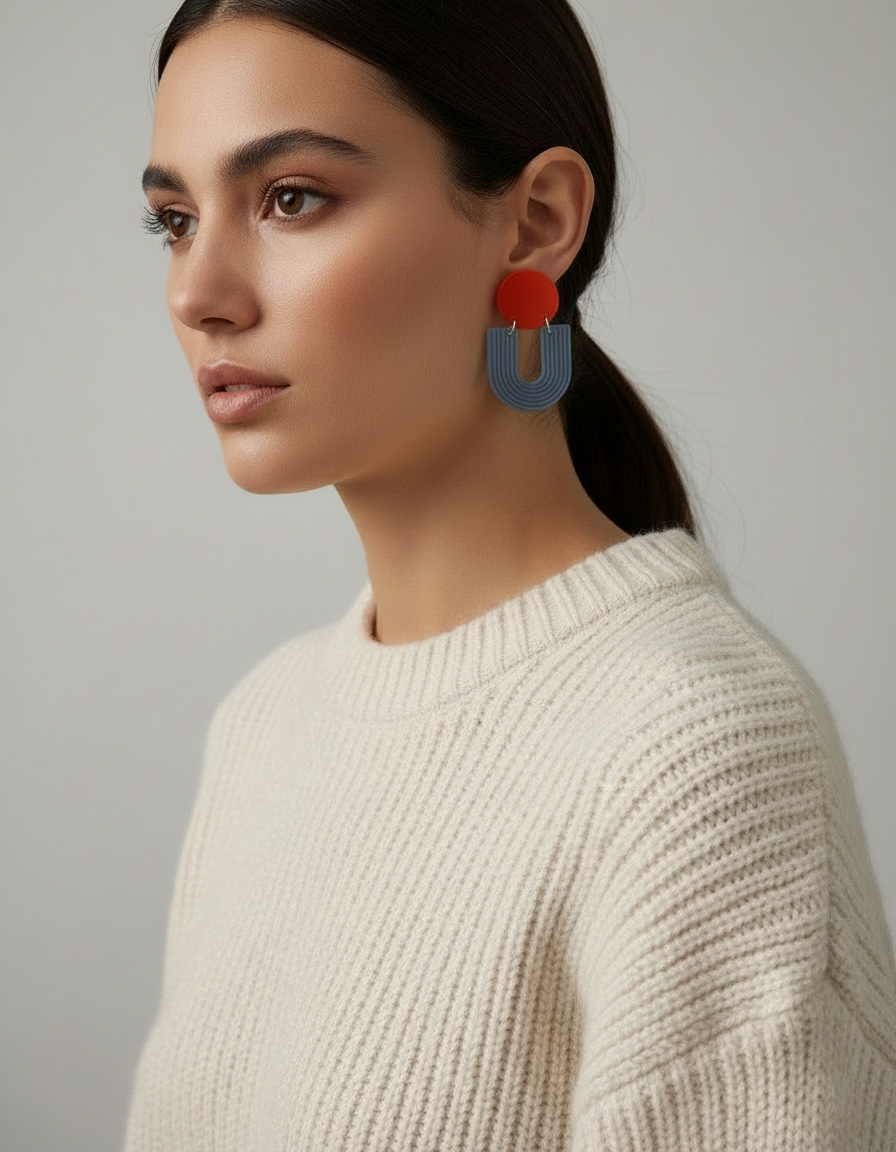 Brilliant red and powdery blue etched eaearring hang from our silver plated spring stud post so pretty much dance proof!