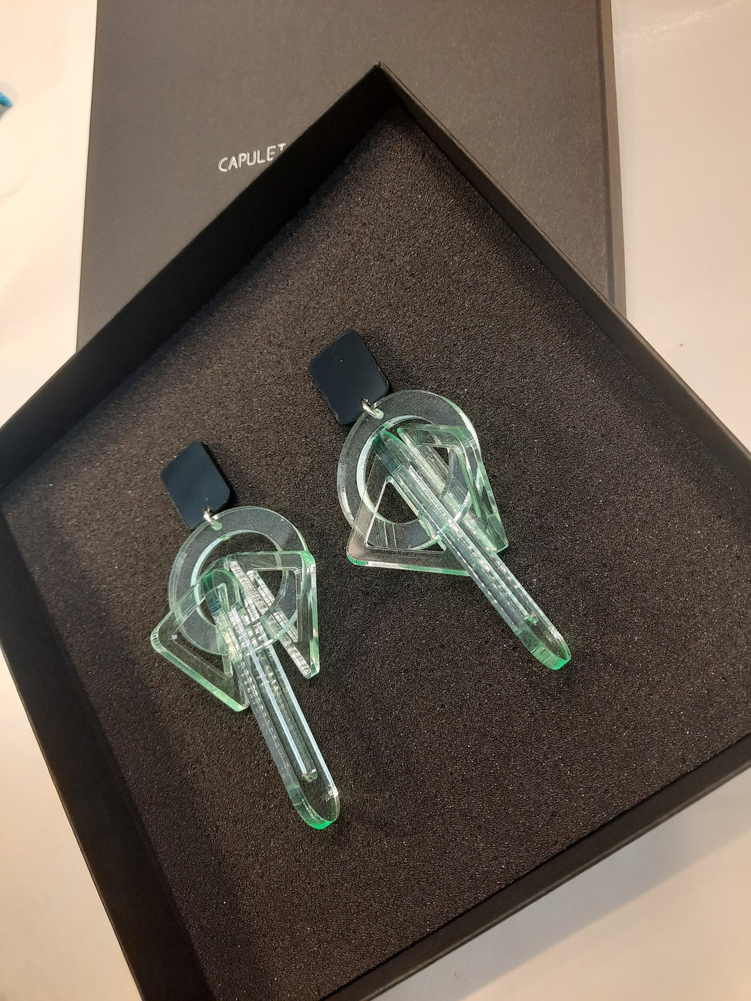 Earrings made from recycled acrylic by Capulet and montague